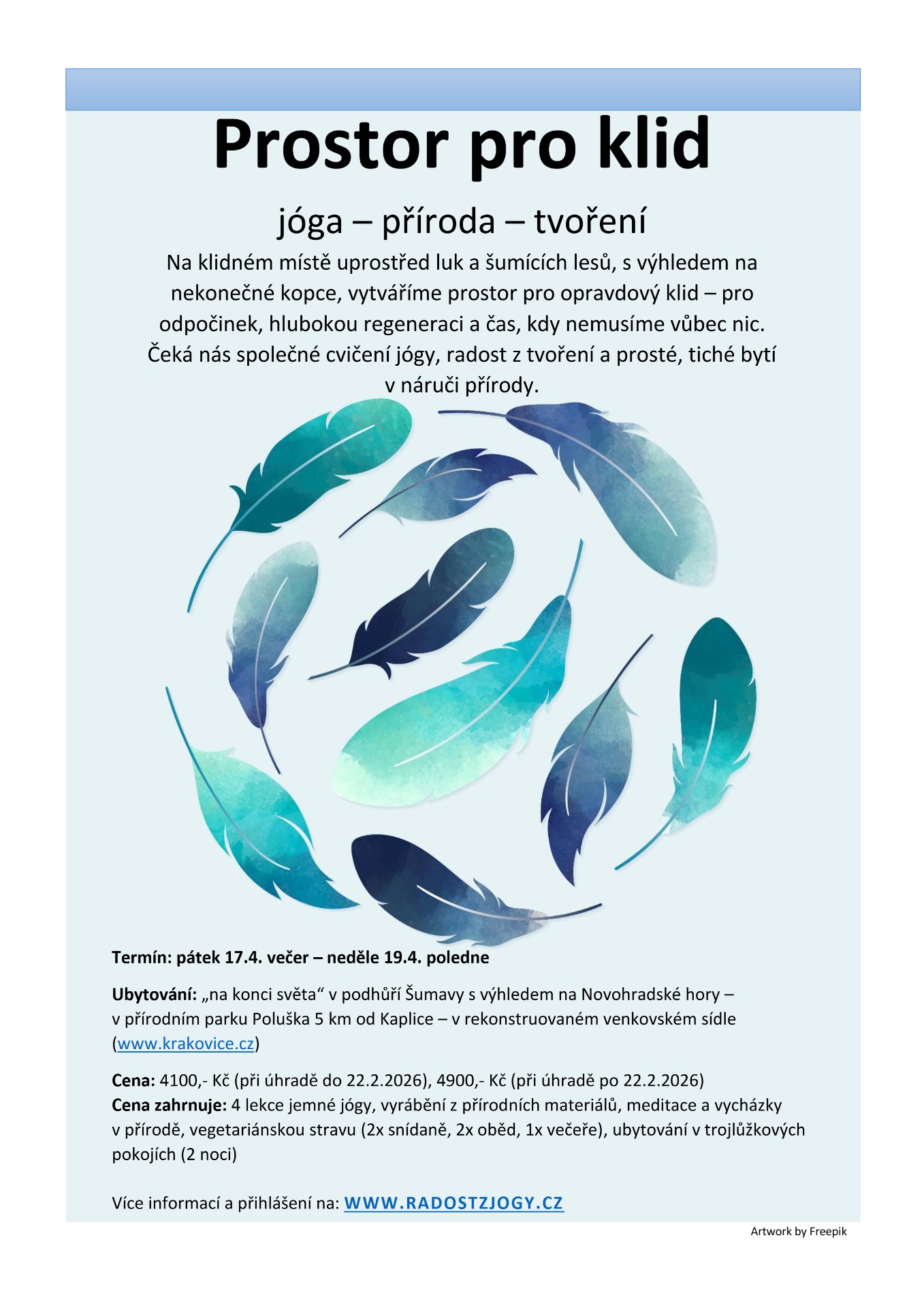 Srdečně zvu na jógový pobyt "Prostor pro klid" – 17.-19.4.2026 v jižních Čechách